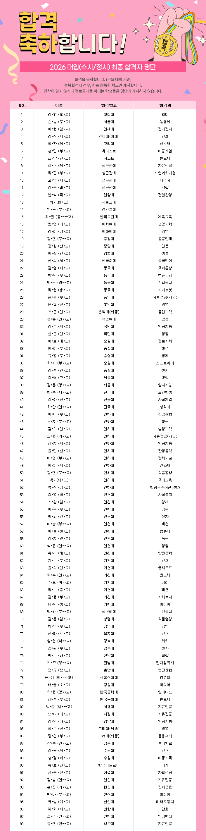 ◆2026 대입(수시/정시) 최종 합격자 명단◆