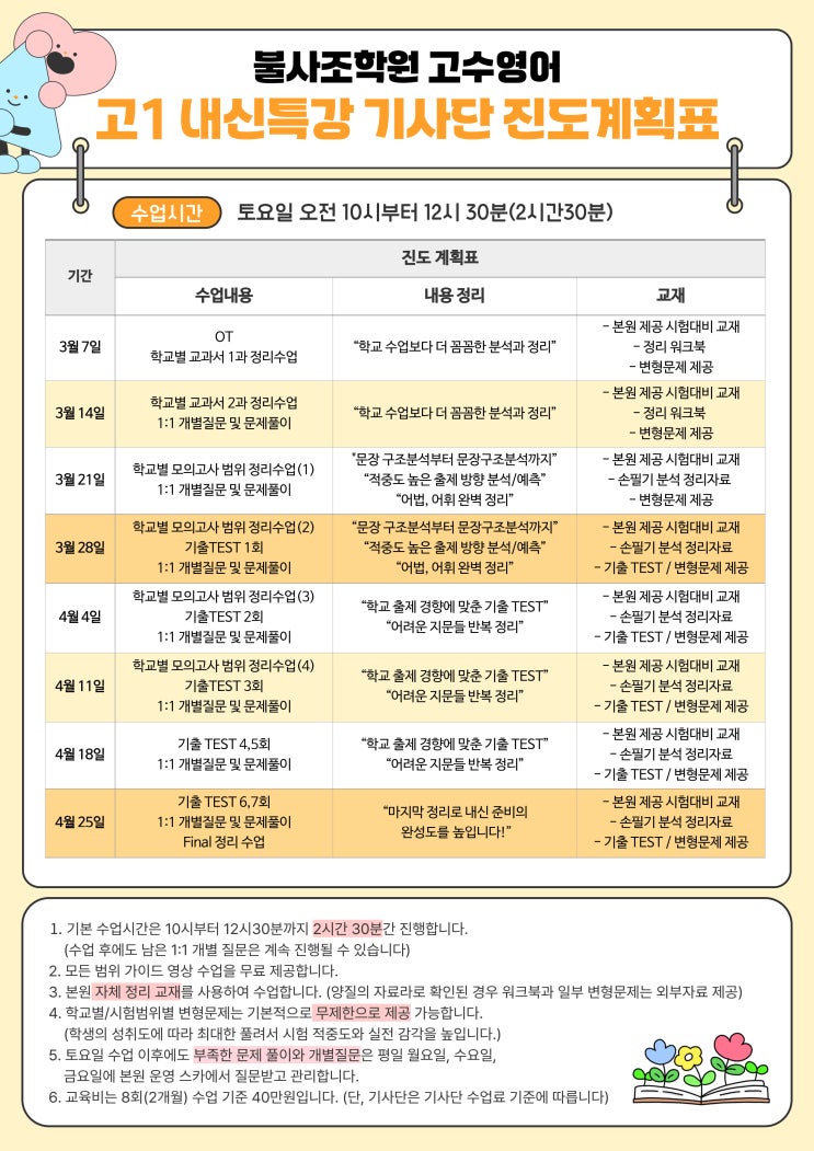 고1 영어 내신특강 기사단 [불사조학원 가좌동학원]