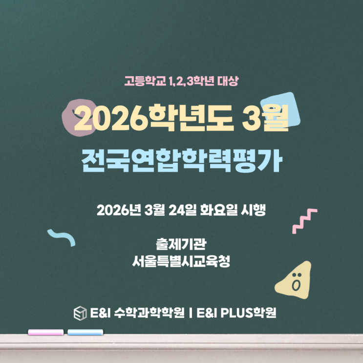안녕하세요 효성동 영어 수학 과학 학원 E&I PLUS학원입니다! 오늘은 3월 24일 화요일에 시행되는 고등학교 전국연합학력평가 정보를 알려드리려고 합니다! 시험 정보 시행 : 2026년 3월 24일 화요일 대상 : 고등학교 1,2,3학년 출제기관 : 서울특별시교육청 시험 시간표 고1 출제범위 고등학교 1학년 공통 출제범위 입니다 고2 출제범위 고등학교 2학년 공통 출제범위 입니다 고3 출제범위 고등학교 3학년 공통 및 선택과목별 출제범위 입니다 학년별 시험 출제 범위를 잘 확인하시고 좋은 결과 있길 바랍니다! #효성고 #작전여고 #세일고 #작전고 #계양고 <img src="https://blogthumb.pstatic.net/MjAyNjAzMTdfNiAg/MDAxNzczNzM4NjIxNzcz.hE3mzf6KstLHwGoAtEwu_o4oImOe3UT4josuUsQsnu4g.anryzPiN4mqH7rbggcXjx01IlQ3I5nWJqHNMAHMGjpkg.PNG/001.png?type=s3" />