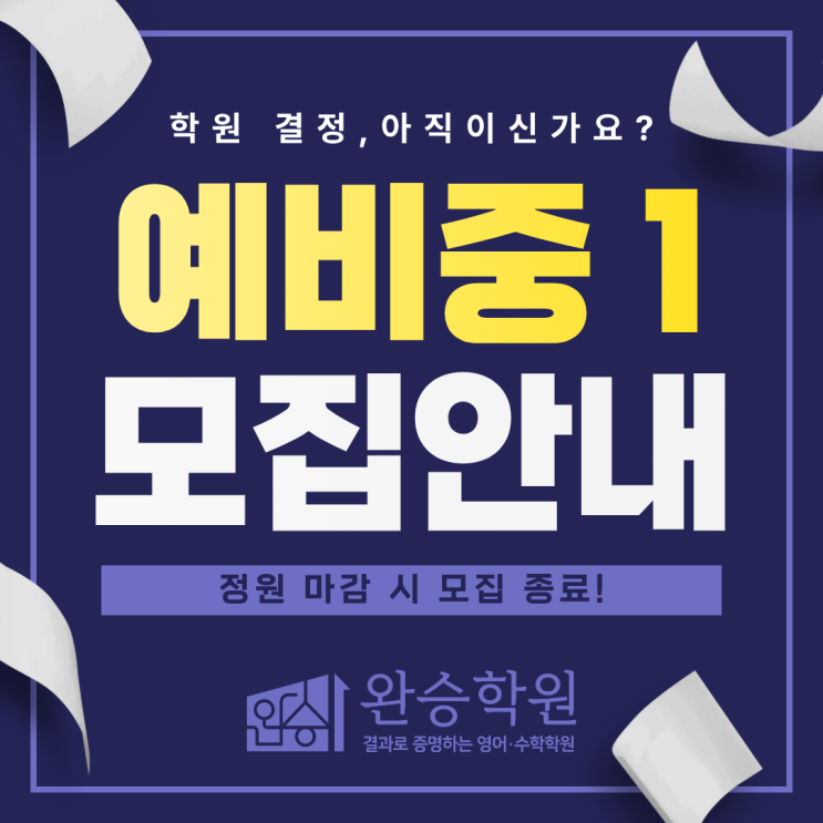 [청라영어학원]예비 중1 모집과 동시에 완승학원 상담 문의 급증! 아직도 어느 학원을 보내야 할지 고민 중이신가요?