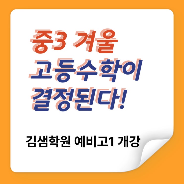 안녕하십니까? 학생들 한명한명의 이야기가 소중한 김샘학원입니다. 중3 학생들의 시험이 끝나고 이제는 본격적으로 고1 수학을 준비해야할 시기입니다. 선행보다 중요한 것은 개념을 이해하고 연결하는 힘입니다. 김샘수학은 그 기초를 단단히 다집니다.” 고등 수학, 지금 시작해야 합니다 중학교 수학과 고등학교 수학은 전혀 다릅니다. 고등 수학은 공식 암기가 아니라 ‘개념의 연결력과 사고력’이 필요한 과목입니다. 김샘수학의 예비고1 수업 특징 개념 → 유형 → 실전 순서의 체계적 수업 고등 내신 대비를 위한 실전형 문제 구성 오답 분석 및 개별 피드백 강화 학교별 내신 기출 기반 학습 고등수학의 첫 단추를....... <img src="https://blogthumb.pstatic.net/MjAyNTExMTFfMjcz/MDAxNzYyODU5OTU4MTM0.GfSaoPrDvqUO7XYLmWqRphvv89Q34gdZ8OClzIdUurcg.S3zmydAW8UkYizxuULbuNQTi6SQLwt-7_3aKSfce7Jsg.JPEG/%C1%A6%B8%F1%C0%BB-%C0%D4%B7%C2%C7%D8%C1%D6%BC%BC%BF%E4_-001_%2838%29.jpg?type=s3" />