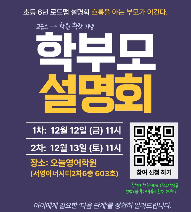 12월 12일(금), 13일(토) 11시 초등 6년 로드맵 설명회 내용