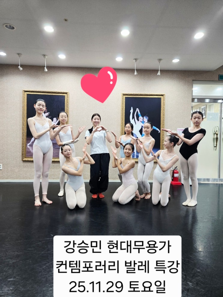 라보떼전문발레아카데미 발레전공생들의 폭넓고 다양한 움직임을 위해 강승민 현대무용가(서울예고 졸/ 이대 학사 및 동대학원 석사재학중_ 베를린 기반 안무가 Veronika Riz 및 Sasha waltz & Guests company(샤샤발츠) 출신 안무가들과 지속적인 협업 바탕으로, 이탈리아와 독일 등 유럽 주요 무대에 참여하며 활동해왔음)의 현대무용 움직임의.기본 테크닉 특강수업을 받았습니다. **지속적인 특강을 통해 발레전공생들의 움직임의 다양성을 확보하기 위해 노력하는 라보떼가 되겠습니다. #청라발레학원 #유아발레 #초등발레 #중고등발레 #전공발레 #예중예고발레입시 #대학발레입시 #발레 소그룹레슨 #발레 1:1 개인레슨 #현대무용입시생....... <img src="https://blogthumb.pstatic.net/MjAyNTEyMDFfMTMy/MDAxNzY0NTg2MDI2MTAz.GX7ZrFNj9iEVbhb8w3x1536ZVcyvj3CXAh9YkwUx2KEg.MIDB8XNvWK6AQ7MiRKRf00siEWVS_kok76DWz3Ub8SYg.JPEG/900%A3%DF20251129%A3%DF160912.jpg?type=s3" />