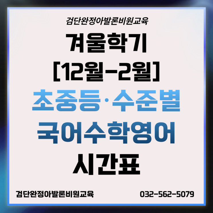 당하동영어학원 겨울학기 초중등 국영수정규특강시간표 커리큘럼