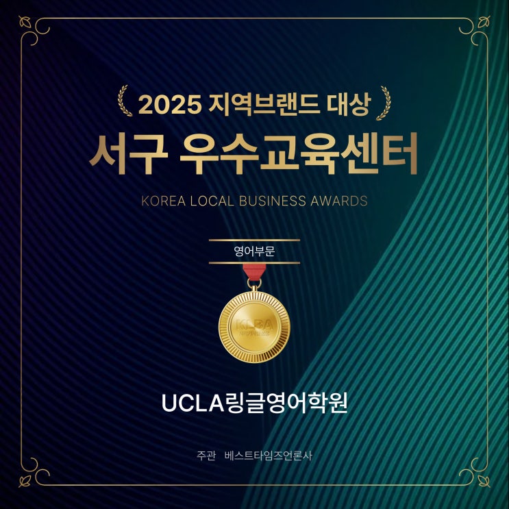 UCLA링글영어학원 2025 서구 우수교육센터 선정 UCLA링글영어학원이 2025 서구 영어학원부문 우수교육센터로 선정되었습니다. 이번 선정은 학생 개별 맞춤 수업, 체계적인 커리큘럼, 그리고 꾸준한 학습 성과를 높이 평가받은 결과입니다. 또한 늘 믿고 맡겨주신 학부모님과 성실히 따라와 준 우리 학생들 덕분이라고 생각합니다. 앞으로도 실력 향상은 물론, 자신감과 사고력을 키우는 영어교육으로 보답하겠습니다. 감사합니다. ^^ 원장님 인터뷰는 아래 링크의 기사로 확인하실 수 있습니다. 교육상담 010-7478-8434 <img src="https://blogthumb.pstatic.net/MjAyNjAyMTlfMTQ2/MDAxNzcxNDgxMjA5NjEy.X7UVRgQ07zyVQM0bT7JfRzSqetfNa44ijkIWEgtNizIg.AyMsrGXihpS1e8S6u4-j5P-d0PMHeuIv10OCwxPFGlkg.JPEG/KakaoTalk_20260219_141348771.jpg?type=s3" />