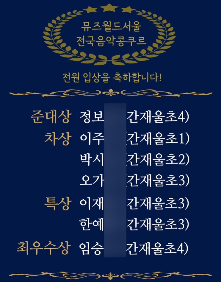 뮤즈월드서울 전국음악콩쿠르 전원 입상