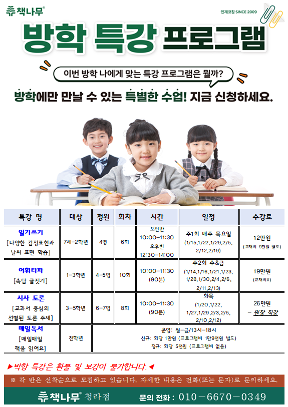 2025 겨울방학 특강 프로그램 안내_책나무 청라점