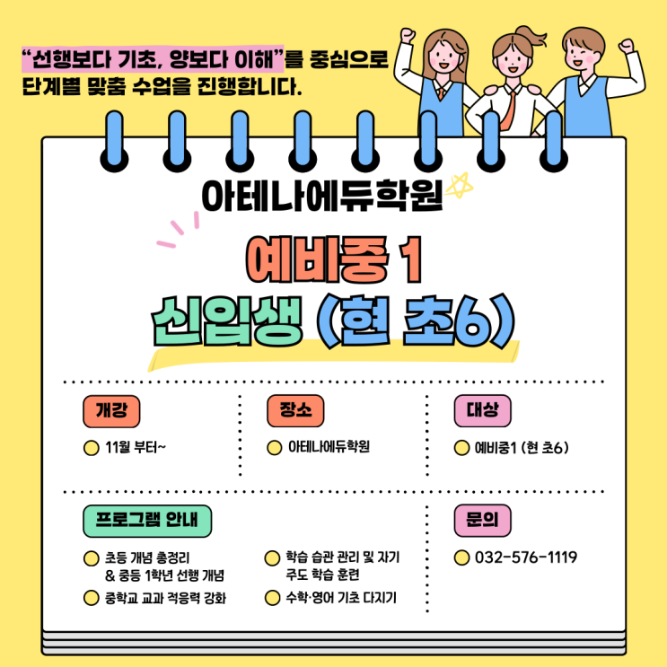 [아테나에듀학원] 예비중1 · 예비고1 정규반 오픈 안내