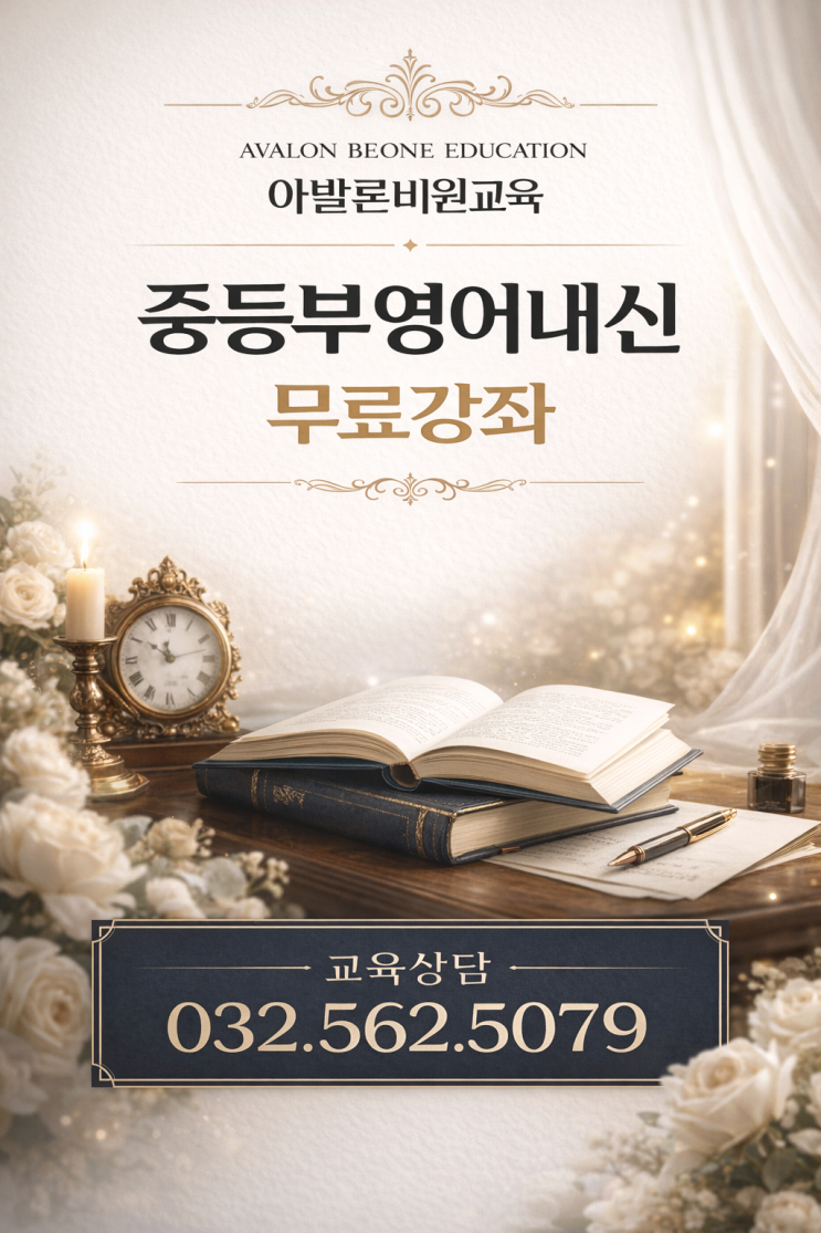 중등부내신대비기간[1+1] 4월1일 개강-4월30일 마감 백석중2[선착순5명] 백석중3[선착순5명] 화목 5시-8시 토요일 선행수업은 선택적수강가능 당하/마전중학생 80명이상 수강중!! 중학교 영어 내신은 고등 내신보다 상대적으로 난도가 낮지만 기초를 얼마나 탄탄하게 잡았는지에 따라 성적 차이가 크게 납니다 특히 중1~중3 시기의 영어 실력은 고등 영어 성적까지 이어지기 때문에 지금 제대로 공부해둬야 이후가 훨씬 편해집니다. 아래는 실제로 제가 중학교 내신 성적을 고민하는 학생들에게 가이드 했던 확실한 공부법이에요. 여러분들도 한번 체크해 보고 따라 해보면 도움이 되실 거라고 생각해요. 1. 교과서 본문의 완벽 이해가 가장 중요....... <img src="https://blogthumb.pstatic.net/MjAyNjAzMjBfNCAg/MDAxNzczOTk3NTI2NDQx.skrpHkg_JoU-FsI2IwW_ffHoTKttXs02_ypwHUsCz8Eg.4Bbtp8MJRE6X_NldmwRLUyVWQVtW9cEaeYPG78Q6HhYg.PNG/file_000000000ee47206bea7a5a2b8f4dcb7.png?type=s3" />