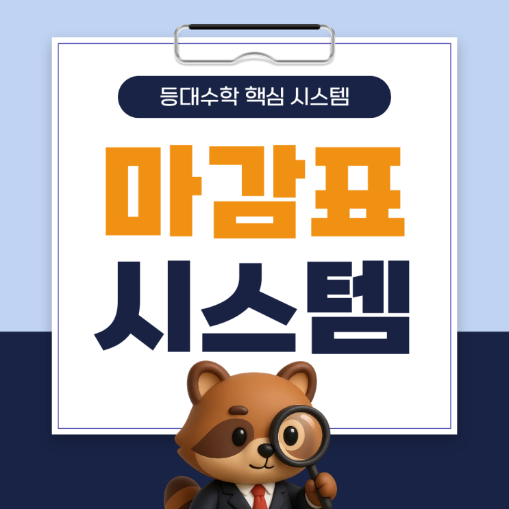 끝까지 따라오면 반드시 오른다. 등대수학 너구리 원장입니다! 수학은 꾸준함이 성적을 결정하고 기초가 탄탄해야 성장이 가능합니다. 그래서 수업을 성실히 듣고 숙제를 꾸준히 하는 것이 가장 확실한 공부법입니다. 하지만 성실은 쉽게 가르쳐 지는 것이 아닙니다. 등대수학은 마감표 시스템을 이용하여 성실을 체계적으로 관리해서 -> 가르칩니다. ✔ 마감표 시스템이란? 간단히 말하면 저저번에 냈던 숙제까지 모두 고쳐서 마무리해야 한다는 관리 기준입니다. ✔ 마감표에는 무엇이 기록될까? 학생의 성실성을 기준으로 아래 항목이 표시됩니다. 1. 숙제를 했는가 2. 오답을 고쳤는가 3. 진도 나간 부분을 학습 마무리 했는가 4. 데....... <img src="https://blogthumb.pstatic.net/MjAyNTExMTlfMTI0/MDAxNzYzNTU3OTkzODIz.Q9gBFKZg_6nXG9_M5k9dpIswjcZ501PB4YySVlUD6nEg.igj3fhnDCLfpRkQfj1AHUPgj8seY1WHstZkkPdneaO8g.PNG/%C1%A6%B8%F1%C0%BB_%C0%D4%B7%C2%C7%D8%C1%D6%BC%BC%BF%E4.png?type=s3" />