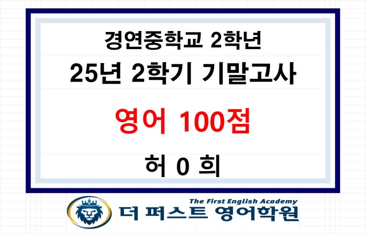 경연중학교 영어 100점 with 더 퍼스트 영어 전문학원 Since 2016