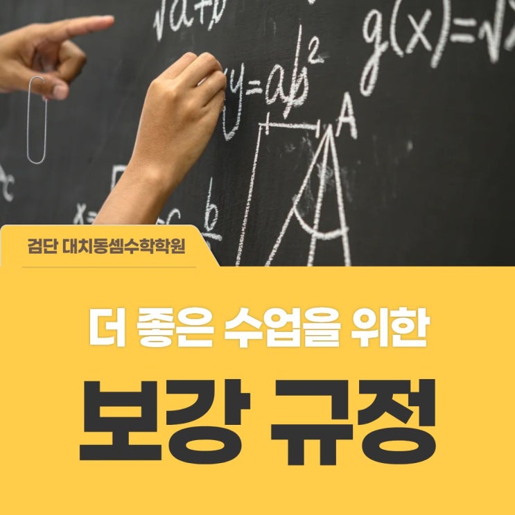 아이들의 실력은 수업의 연속성과 밀도 안에서 완성됩니다. 본 원에서는 아래 기준에 따라 보강을 진행합니다. 보강 규정 ✔ 질병으로 인한 긴급 결석을 제외한 모든 결석은 수업일 이전 사전 접수를 원칙으로 합니다. ✔ 사전 접수 없이 발생한 결석의 경우, 보강 배정이 제한될 수 있습니다. ✔ 보강 수업은 해당 수업 정원이 초과되지 않는 범위 내에서 운영됩니다. ✔ 정규 수업 학생들의 학습 환경과 수업 밀도를 우선적으로 고려하여 배정합니다. ✔ 정원 및 시간표 상황에 따라 희망하신 요일 및 시간과 다르게 안내될 수 있습니다. ✔ 개인 사유에 의한 보강은 월 2회로 제한하여 운영됩니다. ✔ 보강일에 다시 결석하는 경우, 재보강은....... <img src="https://blogthumb.pstatic.net/MjAyNjAyMjhfMjc0/MDAxNzcyMjg5MzE4NjUy.nhg7vVH5M91dAuAdUtY9oPFM6rnQSYKlD1jadzBgHjwg.ddPCBFgcWqupD-fEXyqlQ0r9udUacdBBxVG_oHTydc0g.JPEG/%C1%A6%B8%F1%C0%BB_%C0%D4%B7%C2%C7%D8%C1%D6%BC%BC%BF%E4._%282%29.jpg?type=s3" />