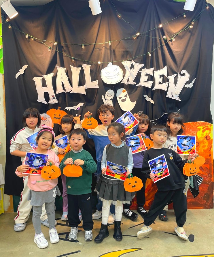 신나는 할로윈 파티 10월의 마지막날은 할로윈데이죠! 할로윈데이가 있는 10월달을 맞이해서 ~ 박쥐가 날아다니는 어둑한 새벽하늘 각자의 캐릭터로 만드는 호박가방과 얼굴인형 treat or trick? 호박가방에 사탕담기 ~ 활동을 해보았답니다 ^_^ 박쥐가 날아다니는 어둑한 새벽하늘 호박가방과 얼굴인형 각자 만든 호박가방과~ 박쥐가 날아다니는 새벽하늘을 들고 사진 찰칵! 표정이 어쩜 이리 익살스럽고 귀여운지ㅎㅎ~ 세명의 꼬마 마법사들은 각자 따로 코스프레를 준비해왔더라구요~ ㅎㅎ 갖춰입고 사진 찍으니까 어찌나 귀엽던지요!! treat or trick? 호박가방에 사탕담기 ~ 종류별로 사탕을 담으면서 ~ 서양의 문....... <img src="https://blogthumb.pstatic.net/MjAyNTExMTJfMTcw/MDAxNzYyOTMzMDQyODQw.URyILEZcJrhQmbHzWMAGBSPqFVNnKEkGXSvaoXiHz1gg.I5t0Ny2s1Qc3-CQ55rb-M53oC2UWyhwz8nZk15Tpp_kg.JPEG/KakaoTalk_20251112_162528285_14.jpg?type=s3" />