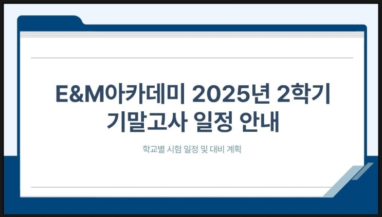 인천 가좌동 수학학원 E&M 아카데미는 단순한 성적 향상을 넘어, 학생들의 빛나는 미래를 설계하는 교육 철학을 실현하고 있습니다. 2025년 2학기 기말고사를 위해 체계적으로 설계된 학교별 맞춤 프로그램을 통해 후회 없는 결과를 만들어 가겠습니다. 인천 가좌동 수학학원 E&M 아카데미에서는 고등학교와 중학교 시험 일정에 맞춘 집중 대비 수업을 시작합니다. E&M 아카데미 2학기 기말고사 핵심 대비 요약 인천 가좌동 수학학원 E&M 아카데미는 학교별 시험 일정과 특성에 맞춘 커리큘럼으로 시험 2~4주 전부터 집중 대비를 실시합니다. E&M 아카데미만의 학교별 맞춤형 시험 대비 3단계 전략 1. 수업 계획: ....... <img src="https://blogthumb.pstatic.net/MjAyNTExMjFfMzQg/MDAxNzYzNzMzMTkxOTQx.LM108wLVQCKaYIHsGeqU93Ir1MBrD56-FddiUFcoKI4g.HjZGuJHZyZQrl_GoYorELtmKW2uju7KLLhMBZYLIDX4g.JPEG/KakaoTalk_20251121_191518925.jpg?type=s3" />