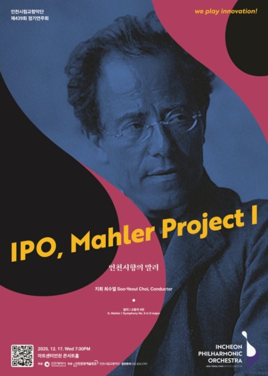 말러 교향곡 9번 D장조 G. MahlerI Symphony No.9in D Major 인천시립교향악단 G. MahlerI Symphony No.9in D Major ㆍ2025-12-17 (수) ㆍ19:30 ㆍ아트센터 인천 티켓 : 전석 1만원 주최: 인천시립교향악단 ㆍ문의 032-420-2781 ㆍ관람연령 : 초등학생 이상 티켓예매링크 <img src="https://blogthumb.pstatic.net/MjAyNTEyMDhfMjcw/MDAxNzY1MjA0NzI0ODc5.YkadTcmlsaIx5wHfHsQCRy1CmPxVrtN3qggyS78npoYg.Rax-wwN-dkt5KdDCQ0mc-obW5ptTRQNPmU2pliCb-f0g.JPEG/550%A3%DF1765204723634.jpg?type=s3" />