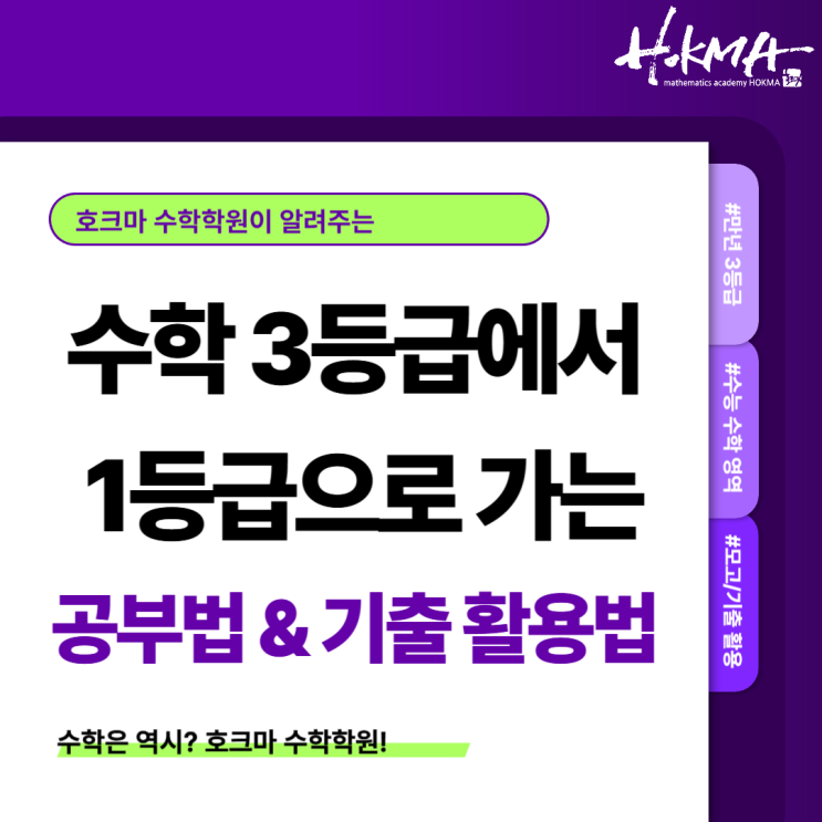 안녕하세요. 인천 수학학원, 호크마수학학원입니다. 지난 포스팅에서는 수학 3등급에서 벗어나지 못하는 이유와, 문제를 풀 때 어떤 기준이 필요한지에 대해 이야기했습니다. 이번 포스팅에서는 그 내용을 바탕으로, 수학 1등급으로 가기 위해 실제 공부에서 무엇을 바꿔야 하는지, 그리고 기출문제와 모의고사를 통해 어떤 방식으로 실력을 만들어가야 하는지 인천 수학학원 호크마에서 구체적으로 정리해 드리겠습니다. 많이 풀어도 성적이 그대로인 이유 많은 학생들이 이렇게 말합니다. “문제는 많이 풀었는데, 점수가 안 올라요.” 이 말이 나오는 이유도 같은 맥락입니다. 문제를 많이 푸는 것은 익숙한 패턴에는 강해지게 만들지만, 새로....... <img src="https://blogthumb.pstatic.net/MjAyNjA0MDFfMTUx/MDAxNzc1MDEwNDczMzc4.DJGO_CyqC56G8YzE0fAtzM54nLQ1-8uti6Bf0hSz5Cwg.aEtyrBwZStV4Oxs7Pk-W6Iazswx2XmzMG8lnjW2AYx4g.PNG/001.png?type=s3" />