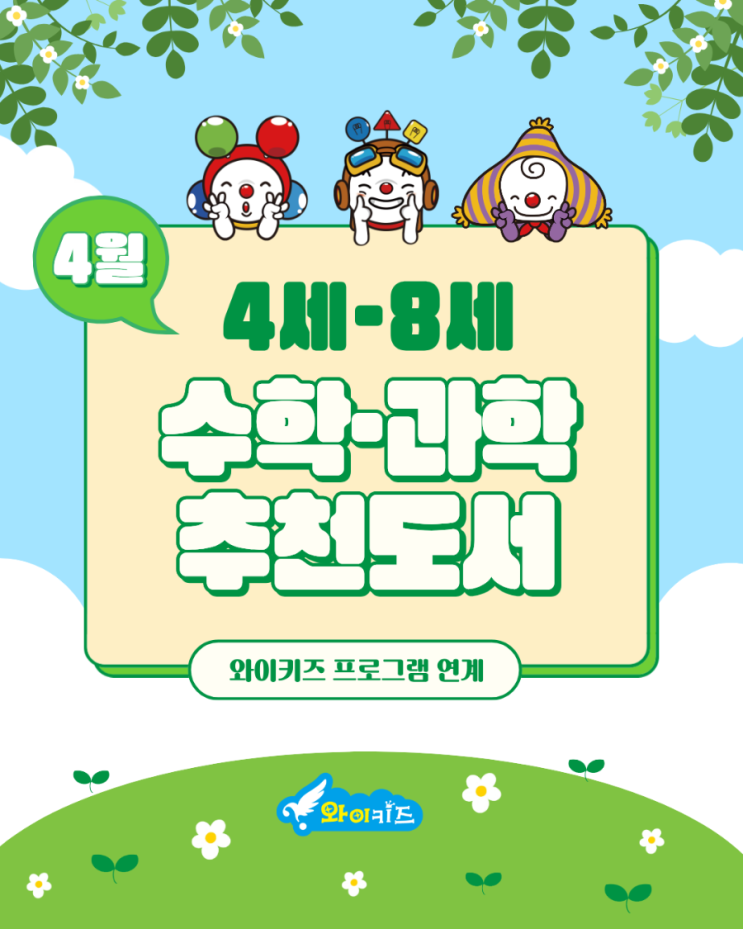 책 읽기 딱 좋은 4월, 우리 아이 마음에 "초록 생각"을 심어요. 나무처럼 쑥쑥 자라는 4세부터 지구를 아끼는 마음을 배우는 8세까지 식목일과 지구의 날이 있는 과학의 달 4월의 수학,과학 도서를 소개합니다. 영재교육연구소가 엄선한 추천도서와 함께 배움을 차곡차곡 쌓아보아요. 지금 "저장"해두고 아이와 함께 책들을 찾아보세요. #와이키즈 #와이키즈검단 #유아과학 #유아수학 #유아추천도서 #검단유아학원 #4세 #5세 #6세 #7세 #과학탐구활동 #와이키즈과학 #체험수업 <img src="https://blogthumb.pstatic.net/MjAyNjA0MDNfMjE0/MDAxNzc1MjAxNjMzODgy.I6aQ7fLXuRwoZ8pctrXwiunX8E674qjMoKILjORH5YMg.LLDTE-bP7hi79YiGdiREaA0rXKj2EIBzlEkpKeUSDN4g.PNG/1775113968193.png?type=s3" />
