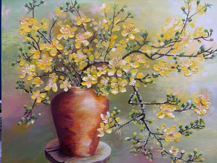 청라성인미술학원 아크릴화 젤스톤 노란매화 황매화