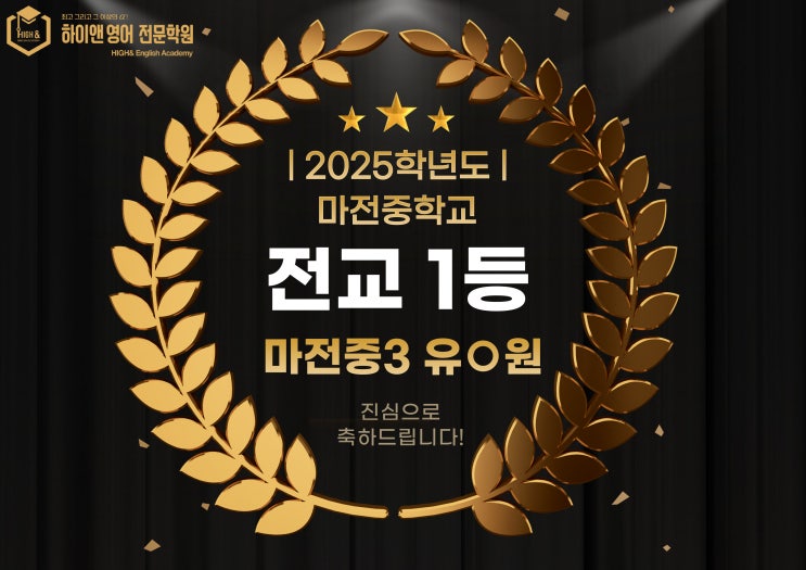 *마전중3 유○원 <전교 1등>!* *마전중1 신○은<전교 1등>!* *마전중3 이○율 <전교 3등>!* ★2025학년도 하이앤 2학기 정기고사까지 100점 117명 배출!! 90점 이상 266명 배출!!★ 안녕하세요 하이앤 영어학원입니다 : ) 저희 하이앤 영어학원 중등부는 올해 <마전중3 전교 1등> <마전중1 전교 1등> <마전중3 전교 3등> 배출을 비롯해, 100점 117명 , 90점이상 266명을 배출하여 탄탄한 실력을 검증받아왔습니다. 이러한 성과가 말해주듯, 아이들의 영어 실력 향상과 철저한 내신 대비 관리에서 저희 하이앤 영어 전문학원의 노하우는 이미 입증되어있습니다. 특히 이제 초6을 마치고 예비중1이 되는 우리....... <img src="https://blogthumb.pstatic.net/MjAyNTEyMDVfNTgg/MDAxNzY0OTI0Nzc4ODA1.3yiYrodv6BPIymf7bKtBqh0aCORrhLfyKI2SBoyDhIog.D9IPtPOLj9iU4V36Q-BmNga8jT-bpfK-N1VZg2SB8vAg.JPEG/2025%C7%D0%B3%E2%B5%B5_2%C7%D0%B1%E2_%B8%B6%C0%FC%C1%DF3_%C0%AF%C8%F1%BF%F8_%C0%FC%B1%B3_1%B5%EE.jpg?type=s3" />