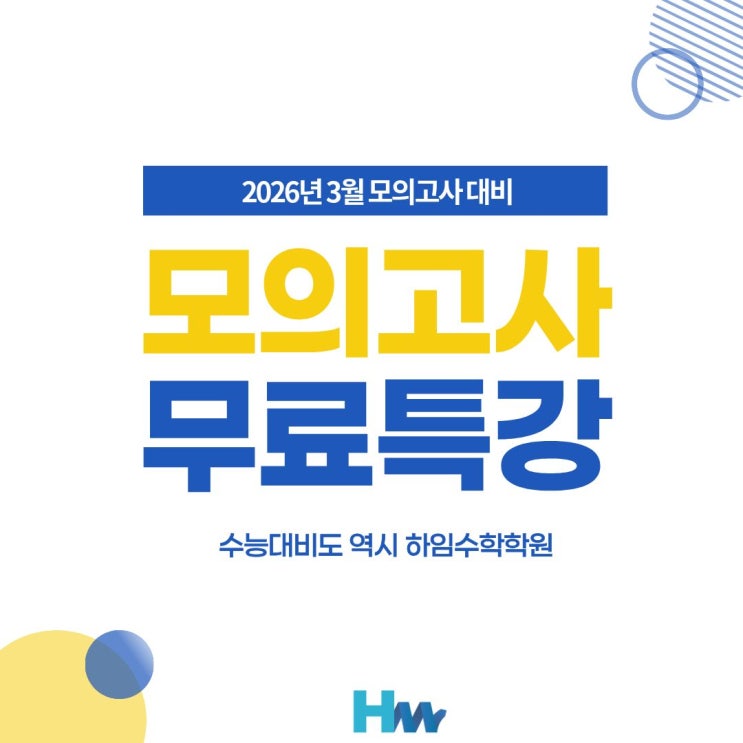 안녕하세요 :) 개별 맞춤 수업으로 수학 학습 지지력을 키워주는 하임수학학원입니다. 새학년 첫 전국 단위 평가인 3월 모의고사가 곧 시행됩니다. 3월 모의고사는 현재 실력을 객관적으로 점검하고, 한 해의 학습 방향을 설정하는 중요한 시험인 만큼, 하임수학학원에서는 고등부 재원생을 위한 3월 모의고사 대비 무료 특강을 준비했습니다! 3월 모의고사 무료 특강 ✔ 대상 : 하임수학 고등부 재원생 ✔ 날짜 : 2026년 3월 15일 (일) ✔ 시간 : 오전 10시 ~ 12시 30분 (2시간 30분) ✔ 내용 : 3월 모의고사 예상문제 풀이 일요일 오전, 하임 친구들 함께 3월 모의고사 완벽 대비해봅시다 :) https://blog.naver.com/turningmath/22393978....... <img src="https://blogthumb.pstatic.net/MjAyNjAyMjBfMTM2/MDAxNzcxNTY0ODkyNjk4.bOfP8GhcXIGSblLanJJC2W1fhX4nTCoveIaapMAPIaQg.7BE_GP_CIiUvCIGssepKUk2fGJTIxGfDvD2Qnc8wb9kg.JPEG/1.jpg?type=s3" />