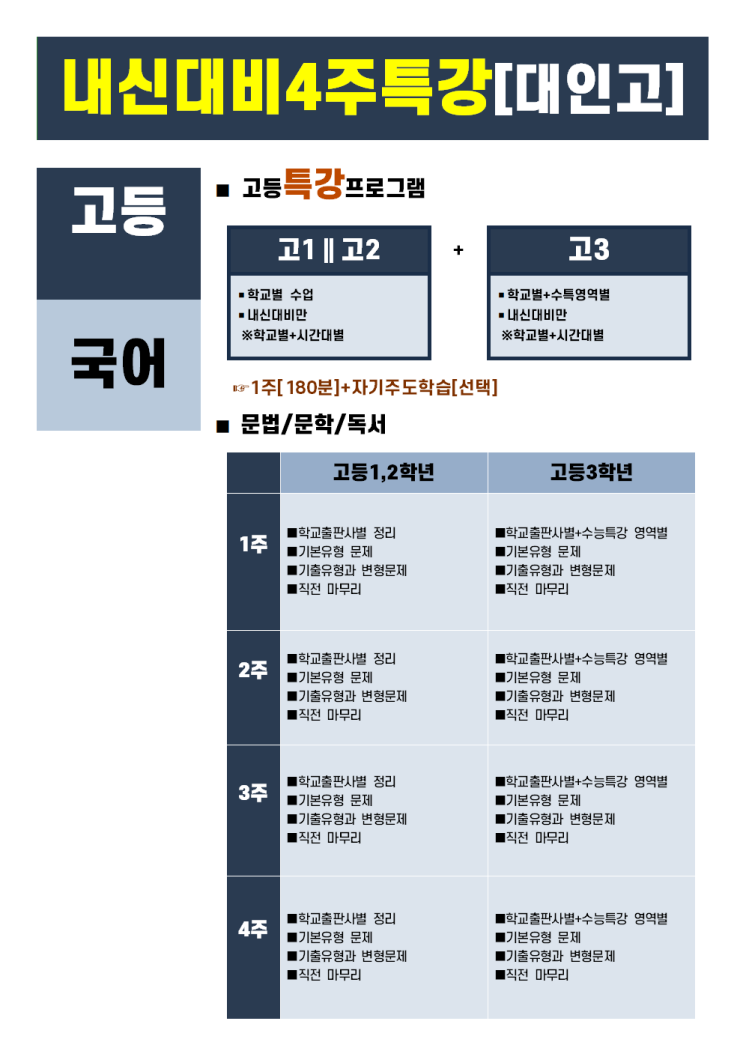 [청라 국어] 내신대비 집중반 [대인고]