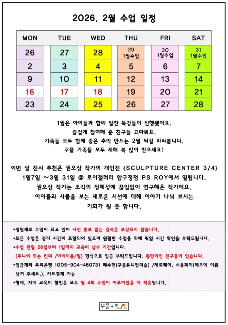 이문동 미술 학원 꾸믈의 2월 일정은요.