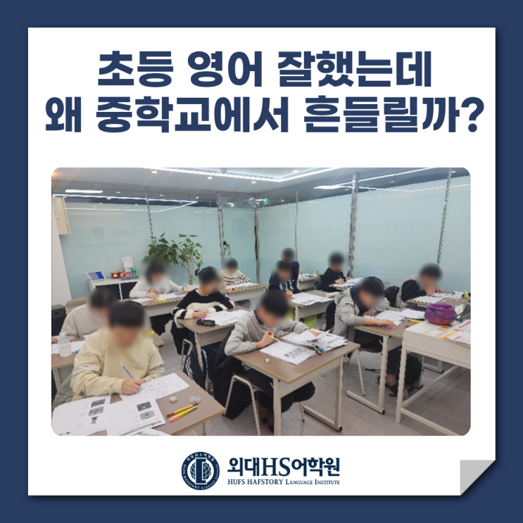 초등 때 영어를 잘한다는 이야기를 자주 들었던 아이입니다. 단어 시험은 늘 90점 이상이었고 학원도 몇 년째 꾸준히 다녔습니다. 영어는 큰 걱정이 없는 과목이라고 생각하셨을 겁니다. 그런데 중학교에 올라가 첫 시험을 보고 나면 분위기가 달라집니다. “해석은 했는데 서술형을 못 쓰겠어요.” “문장이 길어지니까 자꾸 헷갈려요.” 이 이야기는 낯설지 않습니다. 실제로 중학교 영어 평가는 초등 단계와 구조가 다릅니다. 단순 어휘 확인에서 벗어나 긴 문장을 정확히 이해하고 자신의 방법으로 설명하는 능력을 요구합니다. 학교 시험에서도 서술형 비중이 꾸준히 늘고 있고, 문장 구조 이해 여부가 점수를 가르는 요소가 됩니다. 그래서....... <img src="https://blogthumb.pstatic.net/MjAyNjAzMDJfMjc2/MDAxNzcyNDM1NDkwNjA2.gCFjmH5DtPVfucHvBcvgINvbZgEFRjJLKUZhtbZyzBYg.EHKPcJZZkSrRlr53-bIRI4KnB1y7G8mP6-McMa1zNO4g.PNG/%C1%A6%B8%F1%C0%BB_%C0%D4%B7%C2%C7%D8%C1%D6%BC%BC%BF%E4..png?type=s3" />