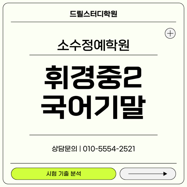 안녕하세요, 드릴스터디학원입니다! 이번 휘경중학교 2학년 1학기 국어 기말고사가 마무리되었습니다. 우리 아이들이 그동안 땀 흘려 준비한 만큼, 어떤 경향으로 시험이 출제되었고 앞으로의 전략은 어떻게 세워야 할지 상세히 분석해 보았습니다. 단순한 점수 확인을 넘어, 다음 학기 국어 성적의 토대를 만드는 '시험 기출 분석' 리포트를 지금 바로 확인해 보세요! 이번 시험은 총 32문항(100점 만점)으로 구성되었습니다. 출제 범위는 발표와 토의, 문법(의문, 한글 창제 원리), 문학(운문/산문), 읽기 영역까지 전 영역에 걸쳐 고르게 분포되었습니다. 난이도 구성을 살펴보면 중급 난이도가 20문항으로 가장 높은 비중을 차지했....... <img src="https://blogthumb.pstatic.net/MjAyNjAyMjFfMTc2/MDAxNzcxNjQyMjY1MTM3.qluvY924d7fH4VYbXrEd6hlijpyLAtDnhPCiPc0us8Ag.gRyB6H83F0WzUF-d5fFefKe3G_Z87LW41mPa9RJ-MfIg.PNG/1.png?type=s3" />