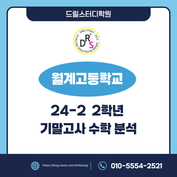 안녕하세요, 드릴스터디 학원입니다! 오늘은 얼마 전 치러진 2024년 2학기 월계고등학교 2학년 수학 기말고사에 대한 심층 분석 내용을 들고 왔습니다. 이번 시험을 위해 우리 월계고 학생들이 얼마나 밤낮으로 고생했는지 잘 알기에, 드릴스터디에서는 이번 시험의 출제 경향을 완벽하게 해부하여 다음 학기, 그리고 더 나아가 수능 대비를 위한 이정표를 제시하고자 합니다. 월계고 수학의 명가, 드릴스터디가 분석한 이번 시험의 핵심은 무엇일까요? 지금 바로 확인해 보세요! 먼저 이번 시험의 개요와 전반적인 난이도를 살펴보겠습니다. 이번 기말고사는 12월 10일에 실시되었으며, 수2 도함수 활용부터 정적분 활용까지의 범위를 다루었습....... <img src="https://blogthumb.pstatic.net/MjAyNjAxMDdfMjUy/MDAxNzY3NzY4OTMwMDc2.11j7Gq-XjzYTdqZNcuCt9fiIa9ISNp_V3GtGMJ7ZSYsg.kefmxiAUb78fFMQJvQgQ2eSfQK7ERXzKYMNYiQSON-wg.PNG/1.png?type=s3" />