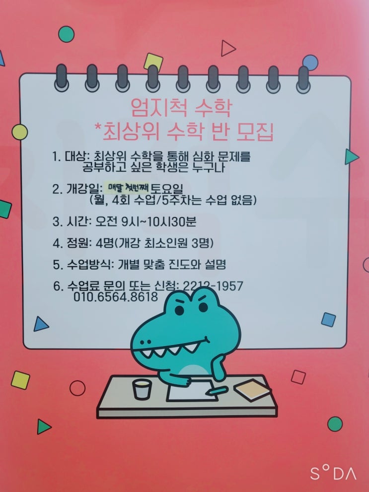 [장안동 수학의힘] 예비중1 개강반 모집 (3월4일 개강!)