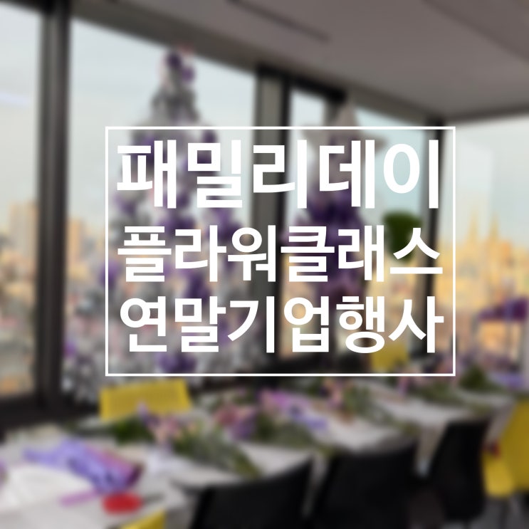 연말이 다가오면 많은 기업에서 사내 힐링 프로그램 패밀리데이 행사 연말 기업행사를 고민하게 됩니다. 이번 D 기업 패밀리행사에서는 기존 기업출강과는 다른 방식의 박람회형 플라워 클래스가 진행되었습니다. 행사 개요 안내 품목 : 나를 위한 꽃다발 진행 시간 : 총 2시간 30분 장 소 : 강남 참여인원 : 60명 진행 : 블루밍해 덕분에 행사 흐름을 방해하지 않으면서도 누구나 부담없이 참여할 수 있는 기업 맞춤형 플라워 클래스가 완성되었습니다. 20분 안에 완성하는 '나를 위한 꽃다발' 짧은 시간이었지만 참여자들은 자녀(아이)와 함께 부모님과 함께 동료와 함께 오직 나를 위한 우리를 위한 꽃다발을 만드는 시간을 갖을 수....... <img src="https://blogthumb.pstatic.net/MjAyNjAyMDZfMjc5/MDAxNzcwMzY4NzU0NzUz.IcH1Bo5uegA2eZxiXMXrGQ9yeWYu1F1EHo_V8Puf8bEg.GYH_SJ2VniWAEObtkyqWdtpAhU7I1yi-9_JWajLBPmkg.JPEG/P20251212_163637473_89CC3D92-A689-4733-829D-7B58124A6D21.JPG?type=s3" />