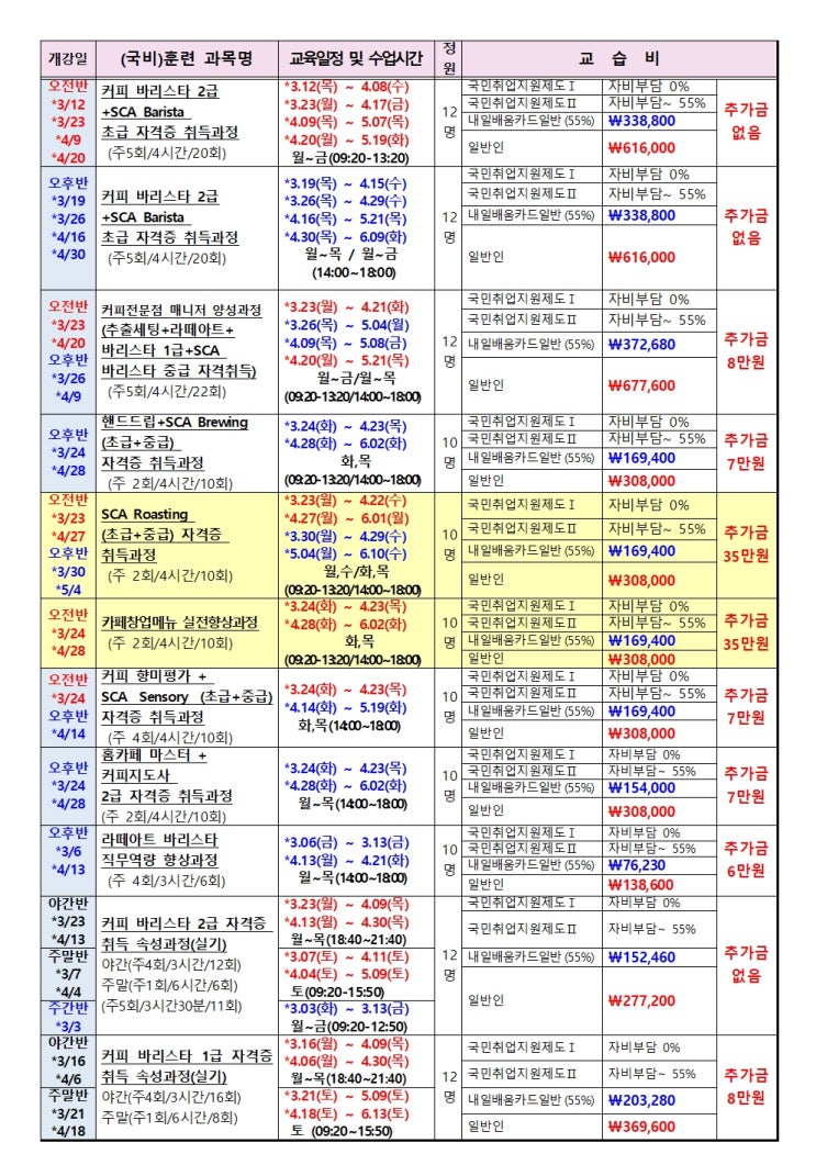 존스커피바리스타학원(상무점) 3~4월 개강 안내