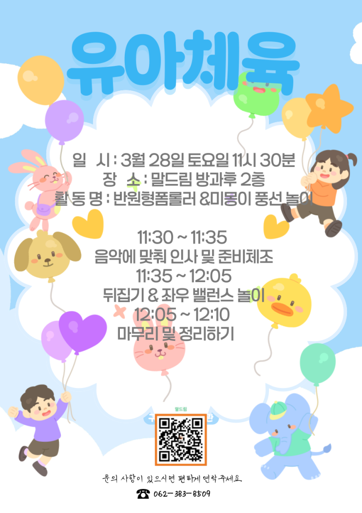 말드림 3월 28일 '유아 체육' 수업 공지사항