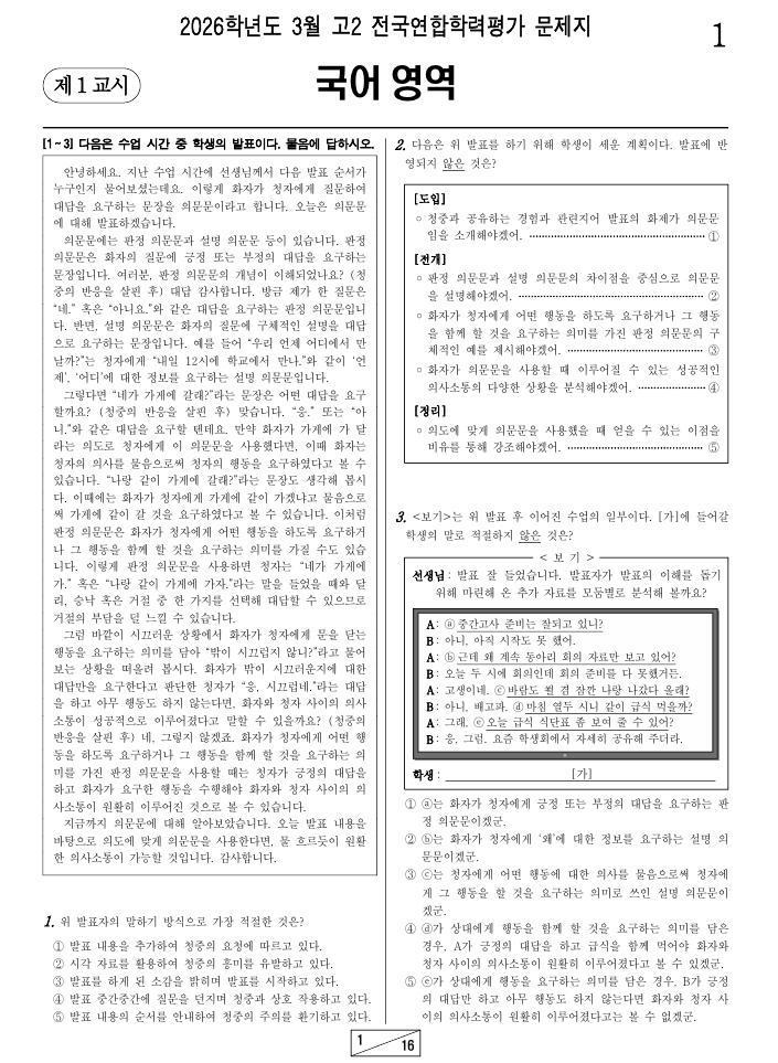 2026학년도 3월에 실시한 고2 국어 학력평가에 문학작품을 분석해 봤습니다. 문학은 31번부터 45번까지 배치가 되어 있고 7개의 작품이 들어가 있네요. 31번 — 「김학공전」 세부 내용 이해 정답: ④ | 출제 의도: 글의 세부 내용을 이해한다 1 학공은 별선의 만류에도 모친과 동생의 복수를 위해 잔치에 참석하였다. ✗ 오답: 별선은 잔치의 위험한 의도를 알고 있었지만 학공에게 말하지 않은 채, 작은 잔으로 술 삼 배만 먹으라고 했을 뿐 만류하지 않았다. 2 별선은 잔치에 다녀온 학공에게 자신의 잘못을 고백하고 용서를 구한다. ✗ 오답: 별선은 학공이 처한 위험 상황을 알려주며 슬퍼했을 뿐, 용서를 구하는 장면은 없다. 3 별선은 학....... <img src="https://blogthumb.pstatic.net/MjAyNjAzMjlfMjEy/MDAxNzc0NzU5NjA2MDcy.h4ib0jN4CWWJ1Q17k98H316-Bry2cxOETnn-0MzEKW8g.mGBRHvrM76Ws2zdBQgLZtRe6dmkp4sQ5tnB6EtUyCjIg.PNG/image.png?type=s3" />