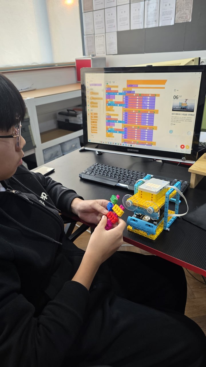 안녕하세요. 오늘은 아이들이 직접 만들고, 코딩하고, 움직임을 완성해 보는 레고코딩 수업 현장을 소개해 드리겠습니다. 이번 활동은 단순히 블록을 조립하는 시간을 넘어, 아이가 스스로 구조를 만들고 문제를 해결하며 결과를 완성해 보는 과정이라는 점에서 더 큰 의미가 있었습니다. 사진 속 장면처럼 학생은 레고 부품을 하나하나 연결해 로봇을 완성하고, 모니터에 보이는 블록 코딩 프로그램을 통해 동작을 세밀하게 조정하고 있었습니다. 자신이 만든 결과물이 실제 움직임으로 이어지는 경험은 아이들에게 아주 강한 몰입감과 성취감을 만들어 줍니다. 레고코딩 수업의 가장 큰 장점은 추상적으로 느껴질 수 있는 코딩 개념을 눈앞의 실....... <img src="https://blogthumb.pstatic.net/MjAyNjAzMzBfNTMg/MDAxNzc0ODQyNDIyMDE5.84M9GPeTFxbnVUkGEGBgaYrevCj4l9fdirqY9oAGWfgg.bjVEyhNhKs8bTPInltS5uTIjT2DaW6oaG9HgeMvkDp4g.JPEG/file_0---359d0c0a-fdc0-4e30-a394-e026aa75bdbb.jpg?type=s3" />