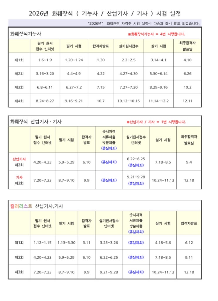 2026 화휘장식 기능사 / 산업기사 / 기사 시험일정