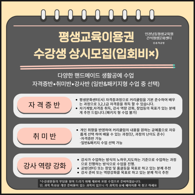 평생교육이용권 공예 수업 상시모집- 인천,경기도 지역 환영(자격증반,취미반,자기계발,강사반)