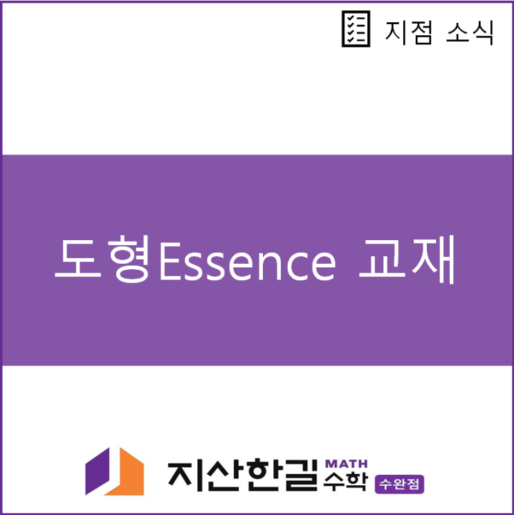 안녕하세요 :) 지산한길수학 수완점입니다. 오늘은 지산한길 선생님들의 노하우가 담긴 저희 학원의 자체 교재 [도형 에센스]에 대해 소개하려고 합니다. 중등 도형, 왜 [도형 에센스]로 함께 공부할까요? 중1-2 · 중2-2 · 중3-2 과정의 핵심은 도형입니다. 이 시기의 도형은 단순한 시험 단원이 아니라, 앞으로 배우게 될 고등 기하와 함수의 기초 언어가 됩니다. 그래서 저희 학원에서는 중등 2학기 도형 단원을 자체 교재 「도형 에센스」로 정리하고 복습할 수 있도록 지도하고 있습니다. ✏️ 『도형 에센스』는 어떤 교재인가요? 『도형 에센스』는 문제집이 아니라 도형을 정리하는 개념 교재입니다. 학생이 직접 도형의 정의를 쓰고....... <img src="https://blogthumb.pstatic.net/MjAyNjAxMTZfMjYw/MDAxNzY4NTU4NTU4Njc2.vlun1ox-TBPyEw-OMHy-kb1RVgs7SNzErSXt3RMs7UAg.ShnD40o713i61_umwvK53RmqcCBJr41e4kS3vvu2oIMg.PNG/image.png?type=s3" />