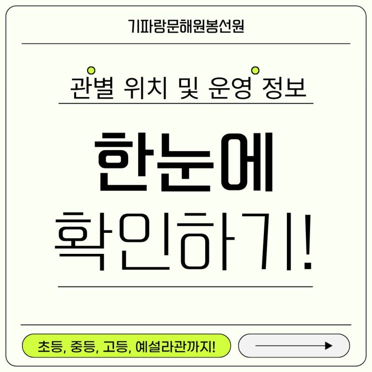[기파랑문해원봉선원] 각 관 운영 시간 및 연락처 정보 안내