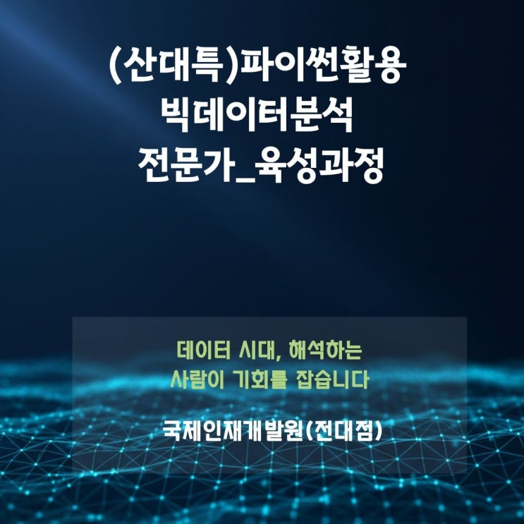 안녕하세요! 요즘 주변에서 "데이터 분석 배워야 한다던데...", "코딩 모르면 안 된다던데..." 이런 말 많이 들으시죠? 저도 처음엔 막연하게만 느껴졌는데요, 오늘 소개해드릴 교육 과정을 알고 나니 "아, 이렇게 시작하면 되는구나!" 싶더라고요 바로 국제인재개발원에서 진행하는 파이썬 활용 빅데이터 분석 전문가 양성과정인데요, 제가 왜 이 과정을 추천하는지 차근차근 설명해드릴게요! 왜 지금 빅데이터 분석을 배워야 할까요? 솔직히 말씀드리면, 지금 우리가 살고 있는 세상은 완전히 달라졌어요. 예전에는 경험과 직관으로 결정을 내렸다면, 지금은? 데이터가 모든 걸 말해주는 시대예요. ?....... <img src="https://blogthumb.pstatic.net/MjAyNTEyMTBfMTIy/MDAxNzY1MzQ0NTI3ODI1.NP3AOlY8pVmedD2bdqNJ1-qNysb42MnbQpfeNEEqkP8g.fTIDcmQLuC-p_x4ocN2ZnjZV8bLzF67oJ1t47Gz8Xw8g.JPEG/KakaoTalk_20251210_141641272.jpg?type=s3" />