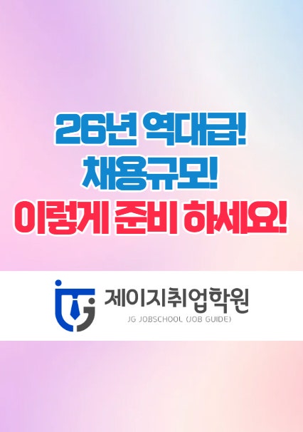 안녕하세요 면접전문 제이지취업학원입니다. 이번에 "2026 취업 가이드: 대기업 역대급 채용 문 열린다! 일정부터 면접 전략까지"라는 주제로 블!로!그를 작성하려고 합니다.^^ 그럼 하나씩 보도록 하겠습니다.^^ 최근 경제적 불확실성이 지속되고 있음에도 불구하고, 국내 주요 그룹사들은 미래 성장 동력을 확보하기 위해 오히려 채용 규모를 늘리는 공격적인 행보를 보이고 있습니다. 성공적인 취업을 위해서는 단순히 열심히 하는 것을 넘어, 변화한 채용 트렌드를 정확히 읽어야 합니다. 오늘 포스팅에서는 2026년 대기업 채용 규모와 상세 일정, 그리고 합격을 결정짓는 면접 필승 전략까지 완벽하게 정리해 드리겠습니다. 1. 20....... <img src="https://blogthumb.pstatic.net/MjAyNjAyMDZfMjU2/MDAxNzcwMzM2OTcyODc4.4I4Ibe5PhD66-vwnwKbBWOJv592wg-ipyLqXunbRueog.oZVZrKOnFxAEVFKwqkXqTxWVJxcby1Q1kunF_fsHQN8g.JPEG/00.jpg?type=s3" />