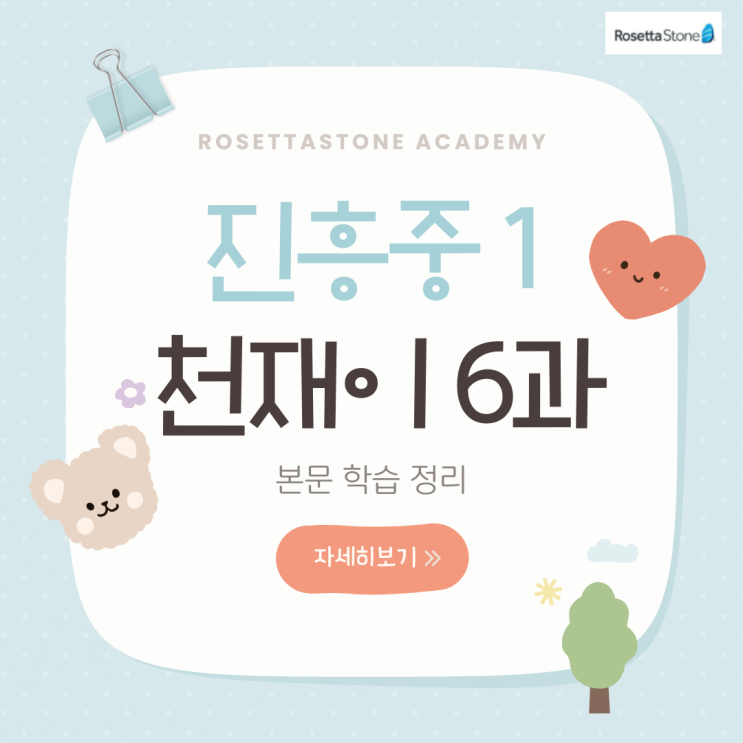 진흥중1학년 천재 이재영 6과 기말고사 대비 본문학습 - 신창동 중등영어 로제타스톤