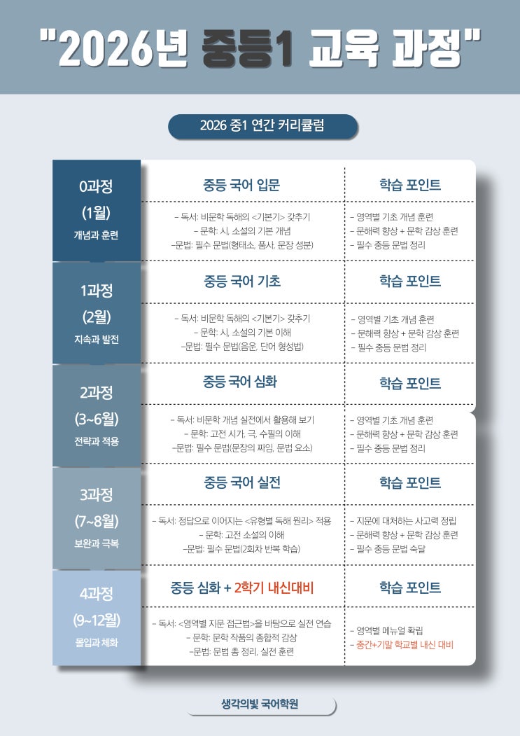 [2026년 중등부 1학년] 연간 커리큘럼 & 1학기 시간표
