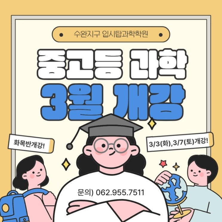 안녕하세요. 오늘도 여전히 수완지구 입시탑과학을 지키고 있는 업글쌤임돠! 와우~ 26년도 1~2월은 가히 상상하기 힘들 정도로 빡센(?) 하루하루를 보낸 방학기간 이였숨돠! ㅠㅠ 덕분에 블로그 소통을 이제서야 하게 되네요. 어마무시하게 많은 일들이 수완지구 과학학원 입시탑에서 시스템적으로도, 수업적으로도 업그레이드와 충원이 되었는데, 이 이야기는 차차 드려볼께요ㅠ 오늘은~ 새학기 2월말쯤이면 어김없이 돌아오는 고통(?)!!! 학원 시간표 변동으로 그 여파여파로 다른 학원까지 옮겨야하는 상황유발?! 따라서 꽤나 많은 학부모님들께서 입시탑과학의 3월 시간표를 문의주시기에 3월부터 시작하는 새로 개강되는 수완지구 중,고등부....... <img src="https://blogthumb.pstatic.net/MjAyNjAyMjdfMTgx/MDAxNzcyMTk0OTc1Njc4.VDQVTlEgLZJDEBMtzKD_VYqxQRvJE93vCOJ6r4LYKowg.NaxGCbJONL-87x-C7gibLxzzHDaBCtHjak6wDvXAO3Yg.JPEG/900%A3%DF1771937785536.jpg?type=s3" />