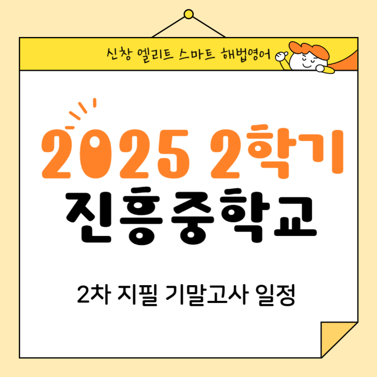 2025 진흥중학교 2학기 2차 지필 범위 및 일정