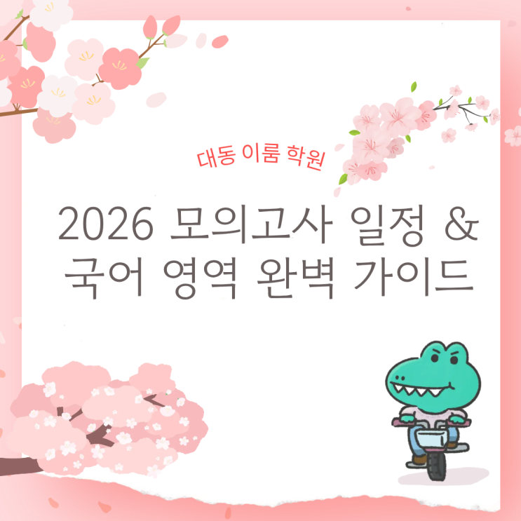안녕하세요, 여러분의 국어 메이트 대동 이룸학원 지희 쌤입니다! 벌써 3월이라니 믿어지나요? 새 학기 설렘도 잠시, 우리 앞에 놓인 건... 네, 맞아요. 바로 '모의고사'죠! (눈물 닦고 시작합시다.) 시험이라는 말만 들어도 숨이 턱 막히는 친구들이 많겠지만, 사실 모의고사는 내 실력이 어디쯤인지 살짝 간을 보는 아주 좋은 기회거든요. 오늘은 2026년 한 해 동안 우리가 마주할 시험 일정과 함께, 특히 변화가 많은 국어 영역을 어떻게 공략해야 할지 핵심만 쏙쏙 뽑아 정리해 드릴게요. 자, 펜 들고 집중하세요!" 2026년 학년별 주요 모의고사 일정 올해 시험 일정은 다음과 같습니다. (주관 교육청 사정에 따라....... <img src="https://blogthumb.pstatic.net/MjAyNjAzMDVfMTMx/MDAxNzcyNzE4NjM0MDMy.ycu2LiTvHWdX1FCId4ZJuICalsohpWD-MC9haIWPCCcg.yoOPlTSpmSsR6mnxhm5eIGlG_8oIPztxCF__EB7hae4g.PNG/1.png?type=s3" />