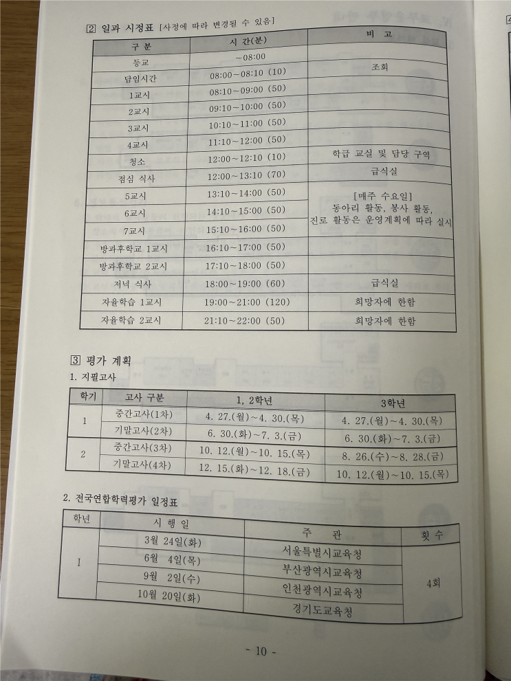 2026년 우송고 신입생 출판사 및 학사일정 안내