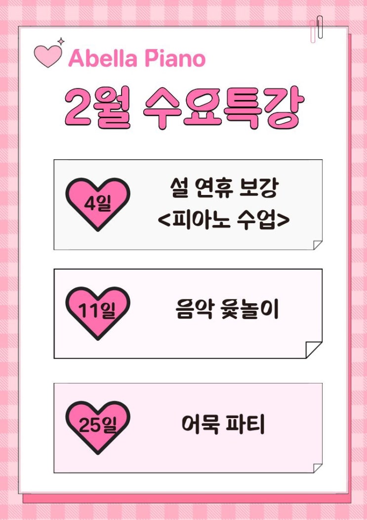 [대전 용전동 용전초 피아노음악학원] 아벨라피아노학원 2월 수요특강 안내