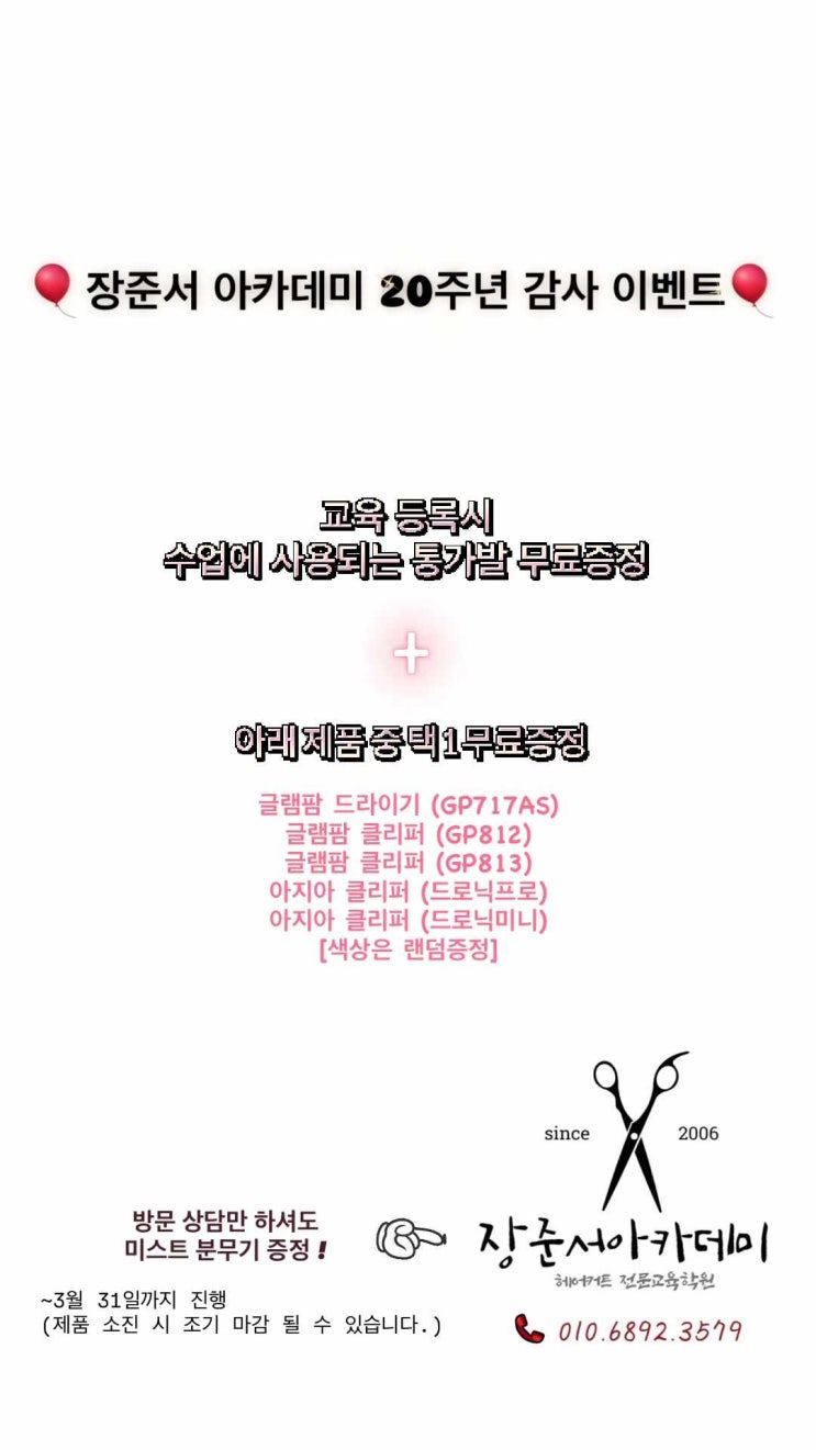 여러분들의 관심으로 장준서 아카데미가 20주년을 맞이하였습니다. 20주년 감사이벤트가 진행중이니, 많은 관심부탁드립니다♀️ <img src="https://phinf.pstatic.net/image.nmv/blog_2026_01_28_2320/kZHRir6qCt_03.jpg?type=f480x480" />