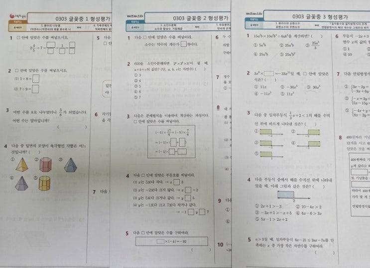 초등 고학년이라고 으스대던 6학년이 글꽃중학교 1학년 신입생이 되니 다시 애기가 된 느낌입니다. 새교복을 입고 머리도 단정히 자르고 들어오는 모습이 뭔가 어른스러워진듯이 보이기도 하고 신입생의 품위가 너무 산뜻합니다. 보기만 해도 미소가 지어집니다. "선생님 다음주 수요일에 형성평가 본데요" "아무리 쉬운 시험이어도 첫시험은 백점을 맞아야 하니 시험대비를 합시다. 40문제 중 3개 틀리면 재시험.." "안돼요" 공부라는게 시간이 지나면 잊어버리니 항상 복습을 해야 합니다. 아니나 다를까 중간 기말에서 백점 맞은 똘똘이도 틀립니다..아직 시간이 남았으니 주말에 백문제 숙제.. 그리고 다....... <img src="https://blogthumb.pstatic.net/MjAyNjAzMDVfMjQ4/MDAxNzcyNjkwMjg0MTc4.mY3jqAzU_Am7ILIWZVF1BlLbGPDURnbB4-2IclNAVyEg.1dHFcAry4JDTVo-d02AzkY1PXCmi7ZTgnh6kJk_wgQAg.JPEG/900%A3%DF1772690283376.jpg?type=s3" />